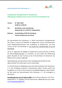 Fortbildung für Übungsleitende im Geräteturnen: Hilfestellung im Bodenturnen & Turnen auf der AirTrack-Matte (4 LE)
